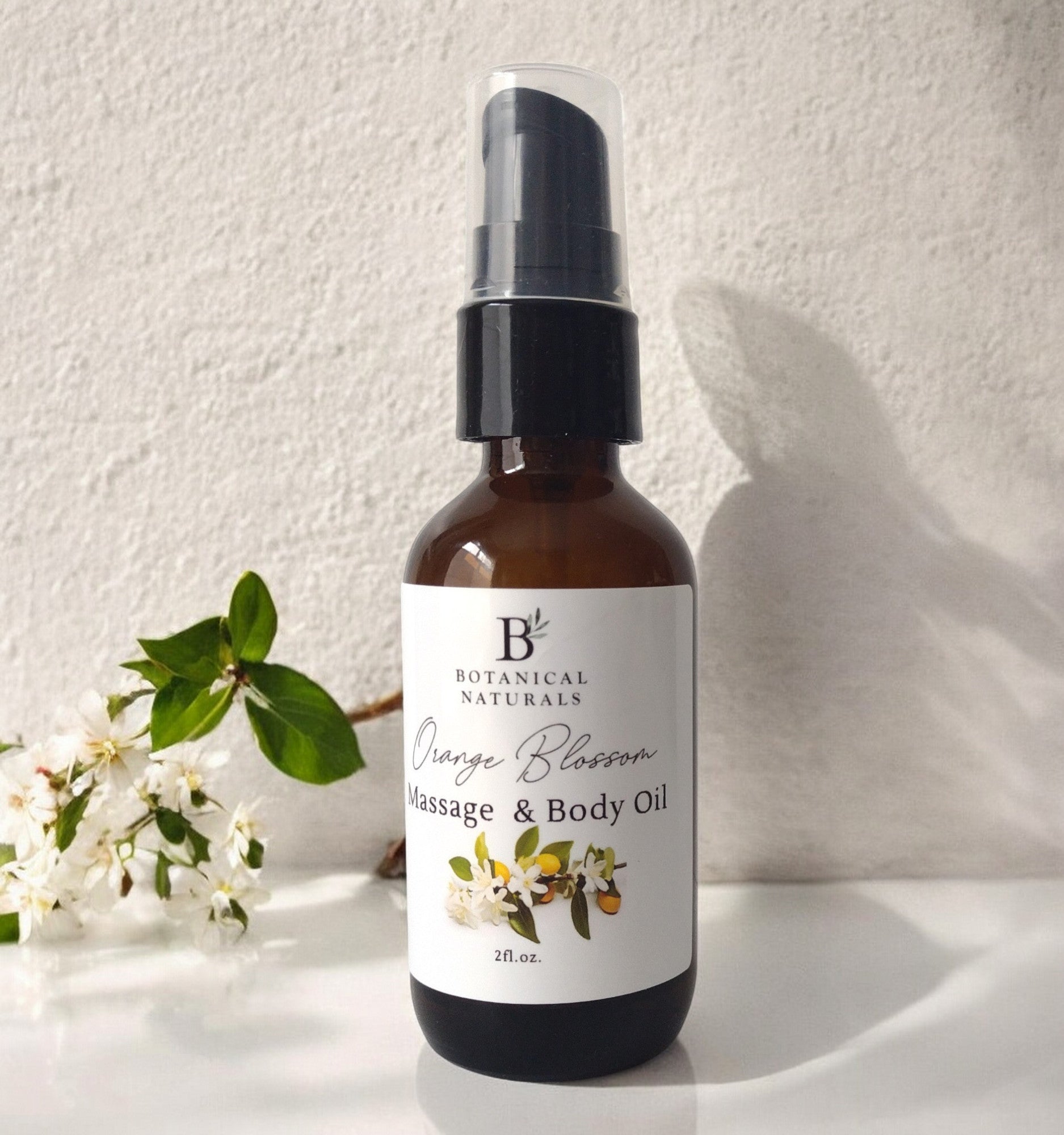 A luxurious blend of pure botanicals and oils to relax the body, uplift the senses, and leave skin soft and glowing. Botanical Naturals hand blended body oil delivers hydration, relaxation, and renewal in every massage. Orange blossom essential oil has a sweet, floral, and slightly citrusy aroma. Often considered an aphrodisiac, this delicate aromatic botanical essence adds a sensual, uplifting dimension to massage.
